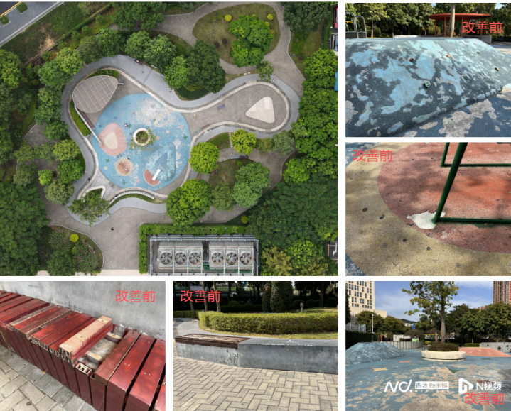 改造前,社区公园设施破损严重:儿童区地垫开裂,存在安全隐患;凉亭漏雨、座椅损坏,居民逐渐不愿前来。